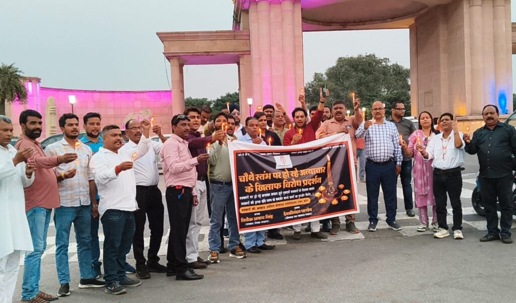 Journalist protest lucknow : पत्रकारों पर लगातार हो रहे हमलों के खिलाफ शनिवार को राजधानी लखनऊ के 1090 चौराहे पर पत्रकारों ने एकजुट होकर कैंडिल मार्च निकाला. विरोध प्रदर्शन किया और पत्रकारों की सुरक्षा के लिए कड़े कानून की मांग उठाई.