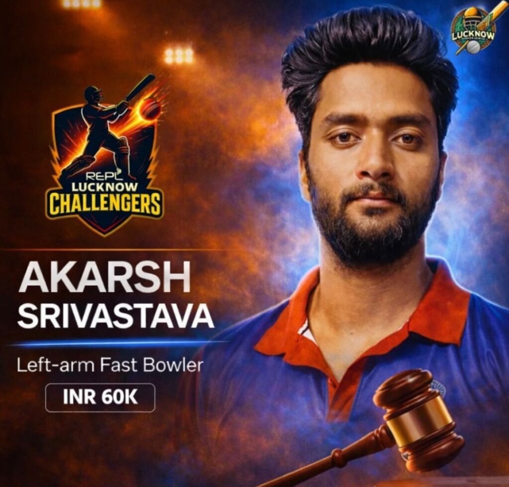 लखनऊ प्रीमियर लीग (एलपीएल)की नीलामी संपन्न: आकर्ष श्रीवास्तव 60 हजार में लखनऊ चैलेंजर्स में शामिल