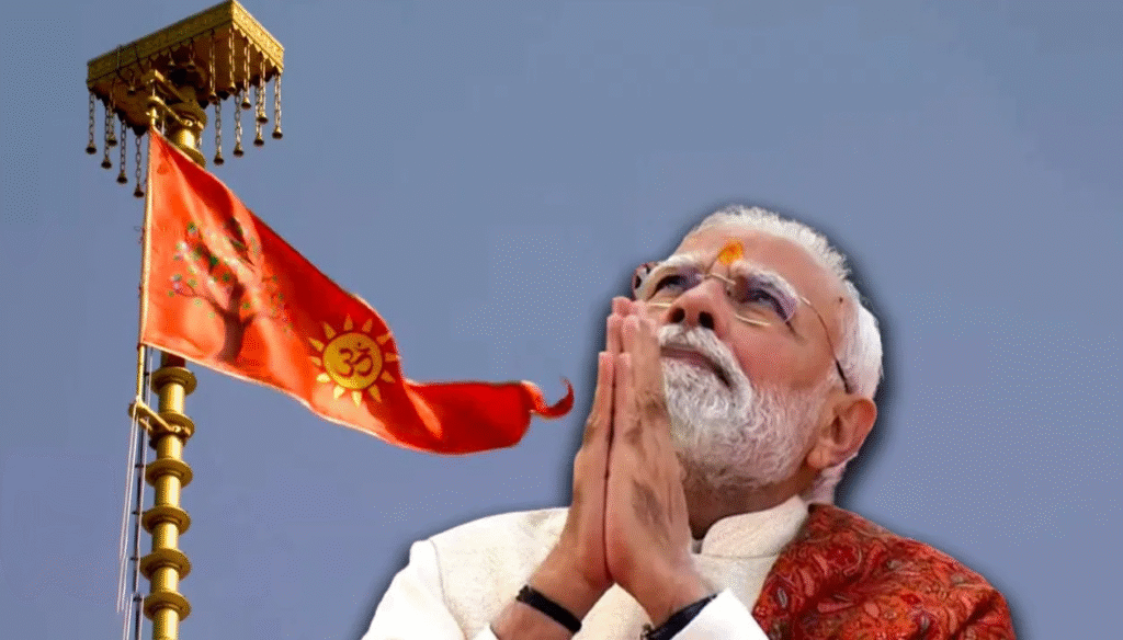 Ayodhya news : नव्य-भव्य जन्मभूमि पर निर्मित दिव्य राममंदिर के आकाशचुंबी शिखर पर मंगलवार को प्रधानमंत्री नरेंद्र मोदी ने धर्मध्वजा का विधिवत आरोहण किया। लगभग दो किलो वजनी केसरिया ध्वजा जब 161 फीट ऊंचे शिखर पर लहराई, तो मानो रामलला के मंदिर की पूर्णता का उस क्षण दिव्य उद्घोष हो गया। इस पवित्र पल में प्रधानमंत्री मोदी, आरएसएस प्रमुख मोहन भागवत, संत समाज तथा वहां उपस्थित सभी भक्तजनों की आंखें श्रद्धा और भावनाओं से भर उठीं। ऐसा प्रतीत हुआ मानो सदियों से चल रही ‘प्रतीक्षा-साधना’ का प्रवाह आज विराम को प्राप्त हो गया हो।