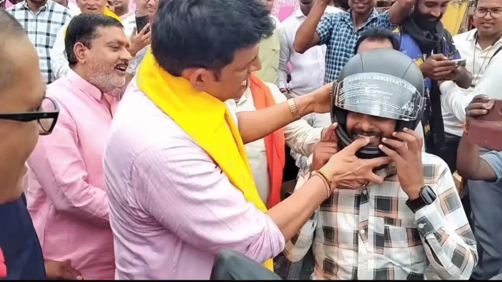 इस दौरान उन्होंने कई लोगों को अपने हाथों से हेलमेट भी बांटे। इस दौरान वहां से बगैर हेलमेट के गुजर रहे एक राहगीर को हेलमेट लगाते हुए कहा कि “क्यों हेलमेट नहीं लगाते हैं, कपार ही सबसे महत्वपूर्ण है, ई फूट जाई त केहू नाही बचा पाई.. टक दे लगी खट दे ऊपर चल जइबा”.. काहे नहीं हेलमेट लगाते हो जी?